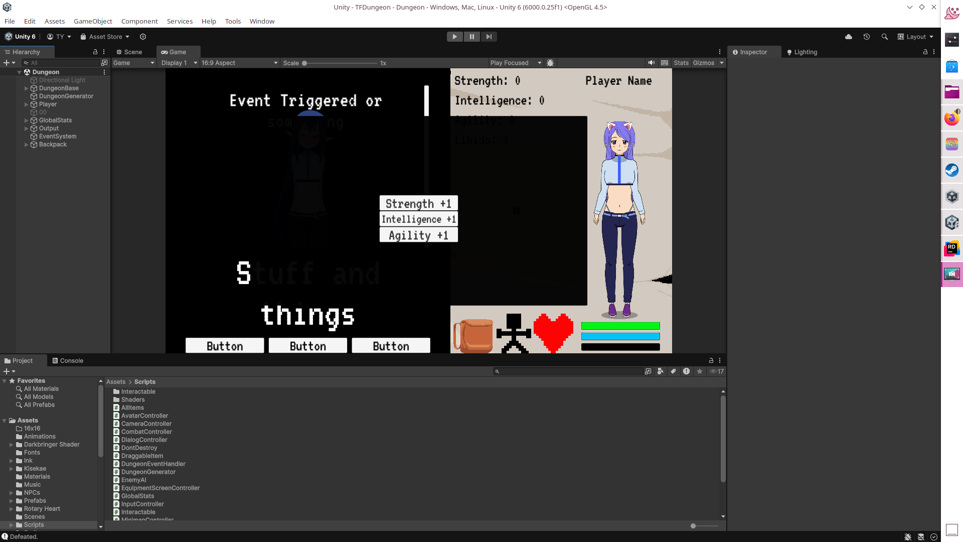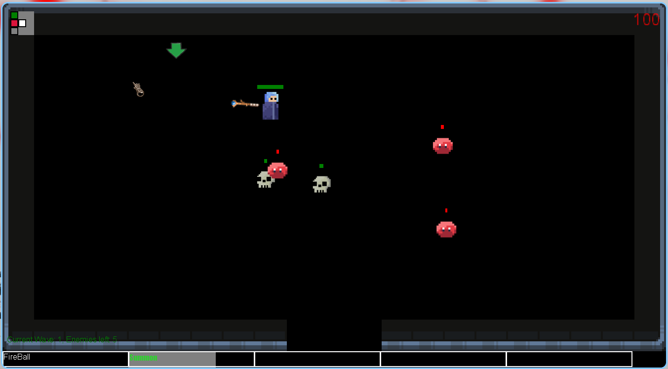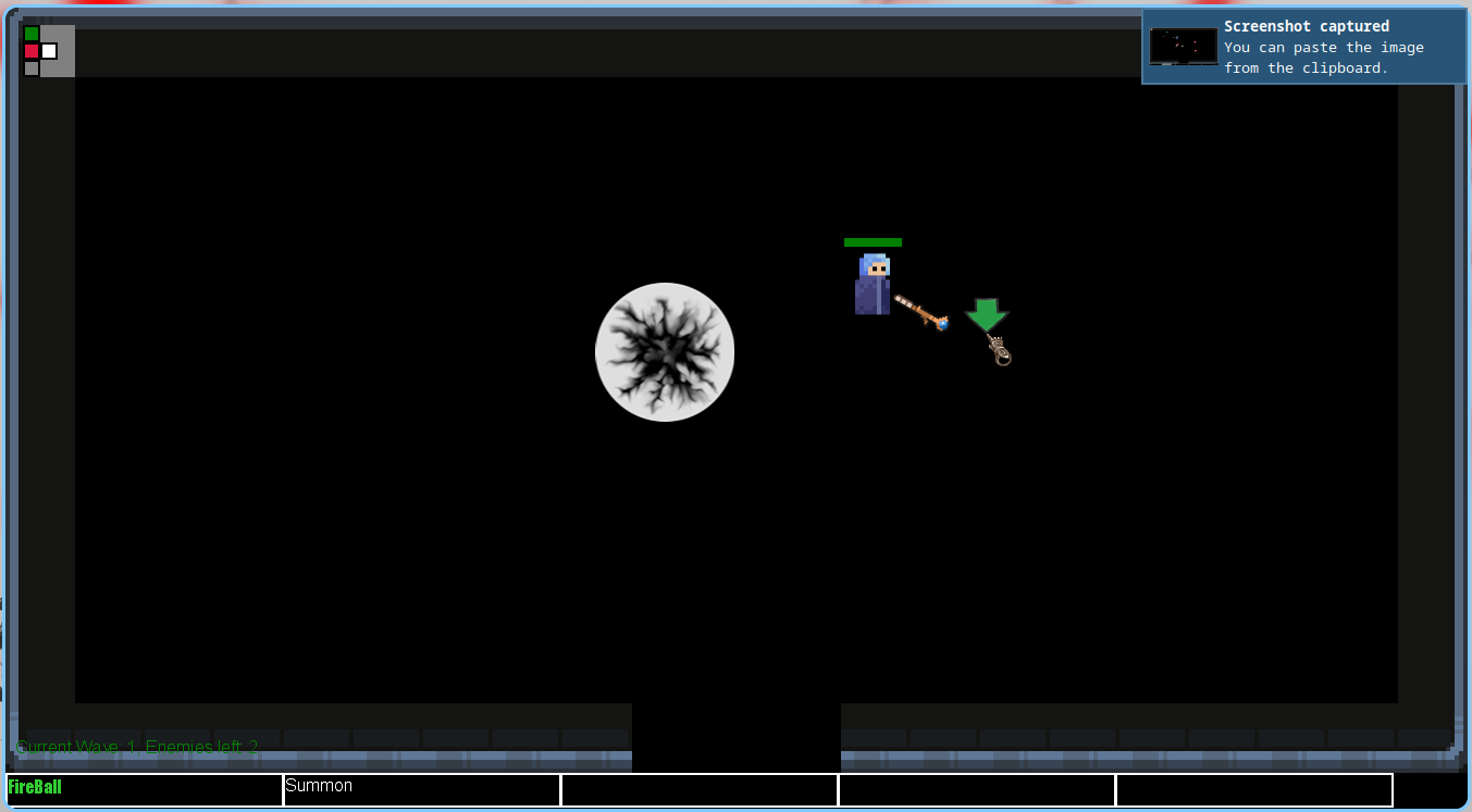 A rogue-like game where you mix different spells to produce different elemental reactions. Cancelled it after realizing how spam-y the combat ended up being. (also the code was aaaaaaass)