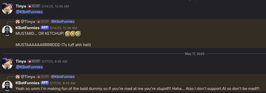 A dumb inside joke I made. Discord bot that replies to mentions with a random post from the X (formerly known as Twitter) account "KDotFunnies".